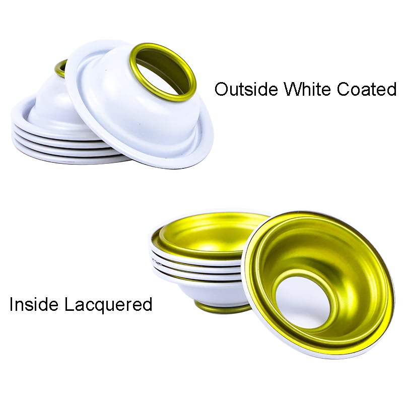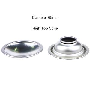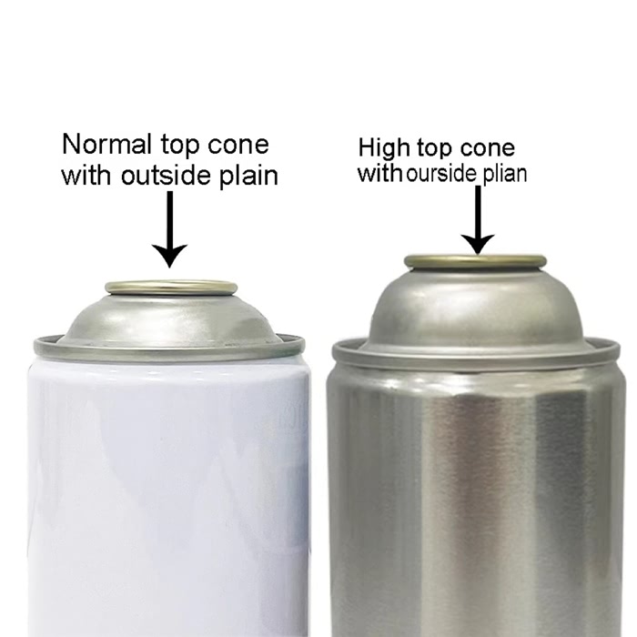 气雾马口铁罐上锥盖分为两种类型:标准上锥盖常用于飞雪罐、汽车护理气雾罐、喷漆罐等;高上锥盖适用于丁烷气罐与空气清新剂罐。