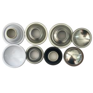 | 1. 产品名称:气雾罐配件/上下盖/锥盖与底盖 2. 直径:45/49/52/57/65/70mm 3. 材质:马口铁 4. 颜色:透明清漆、内部涂层、白色喷涂、黑色喷涂、其他颜色喷涂 5. 包装:托盘 |  |