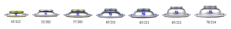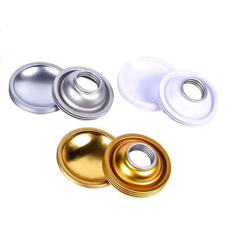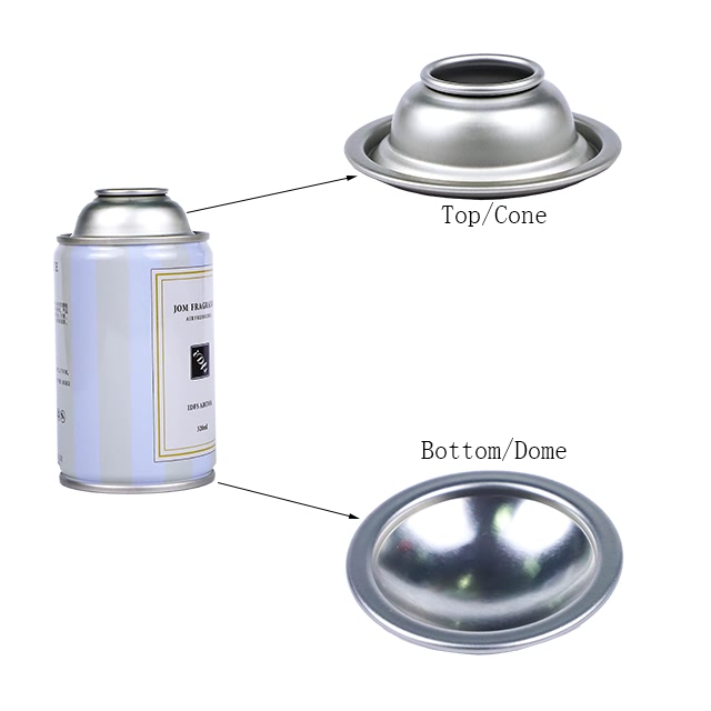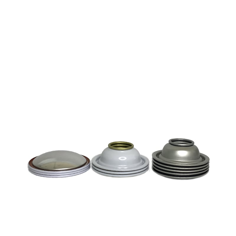 气雾罐上下盖,也称为气雾罐锥盖与底盖,用于三片式马口铁气雾罐生产。可提供直径45/49/52/57/65/70mm规格,外部可做透明/金色/红色/黑色/定制颜色处理,内部采用透明或金色涂层。变形压力:≥1.2兆帕,爆破压力:≥1.4兆帕。
