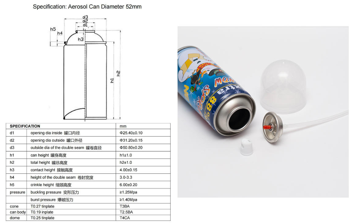 OEM 45×128mm & 52×130mm 飞雪喷雾气雾铁罐